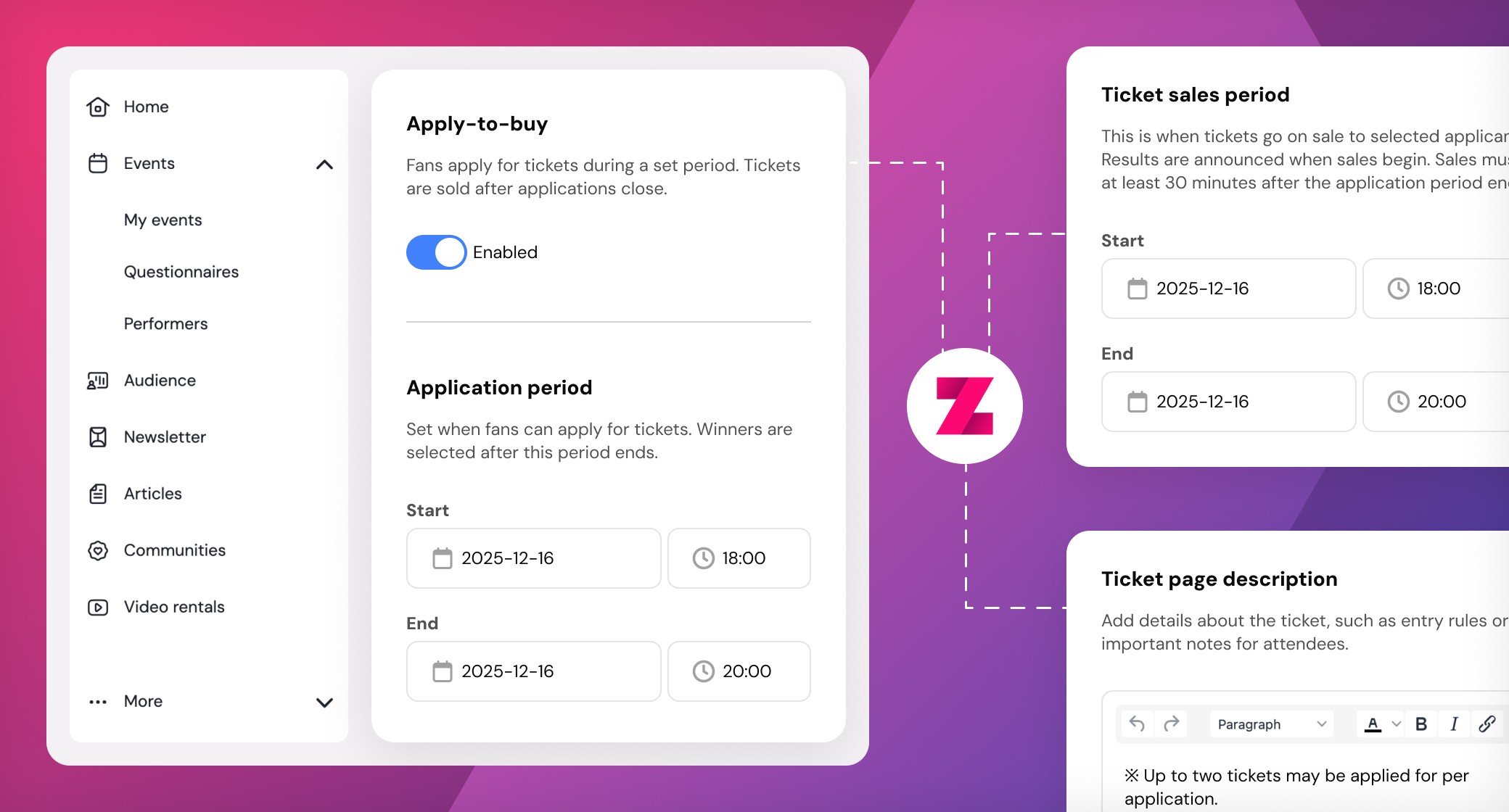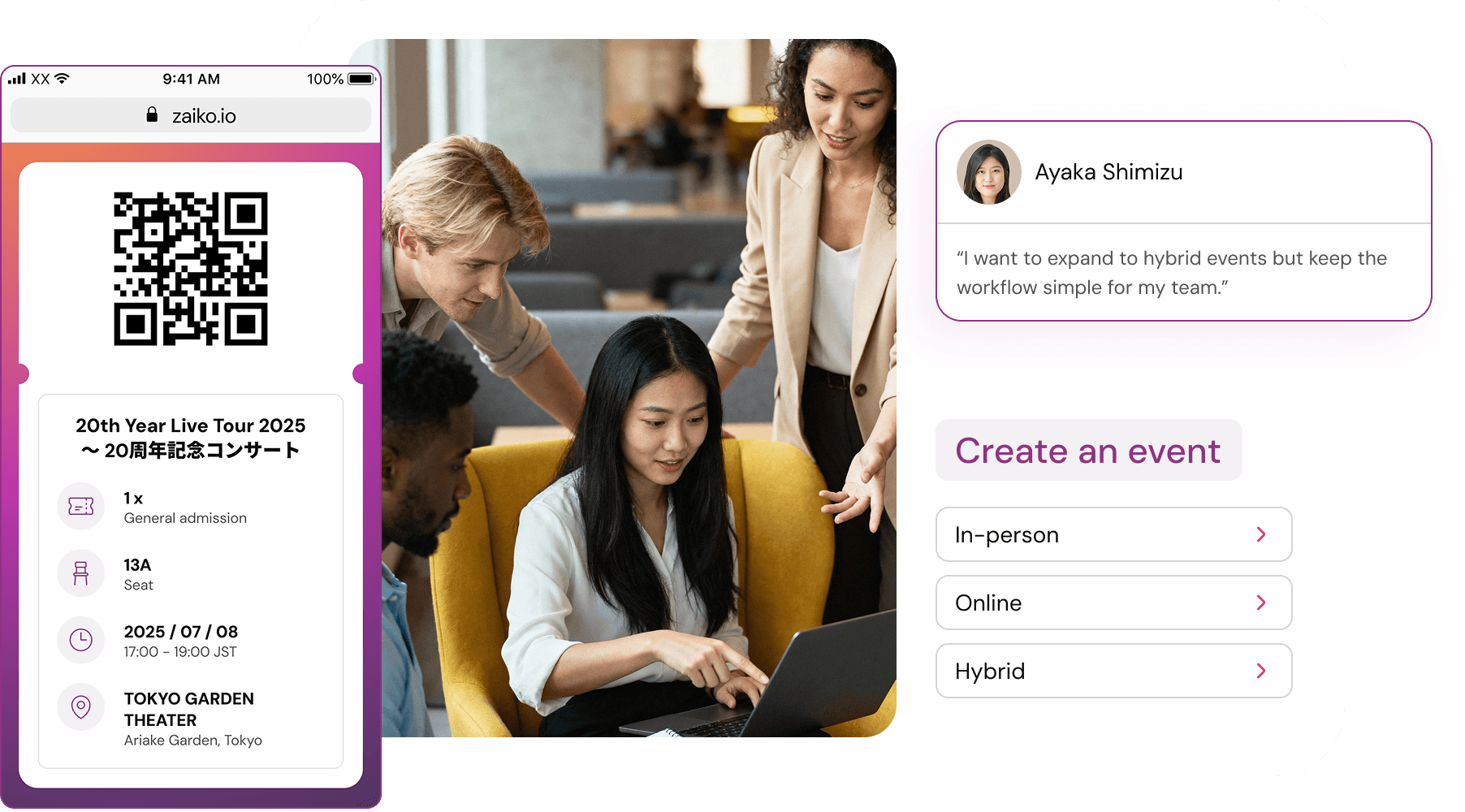 ZAIKO is a global ticketing and event technology platform that helps creators, artists, and organizations reach audiences anywhere — online or in person.