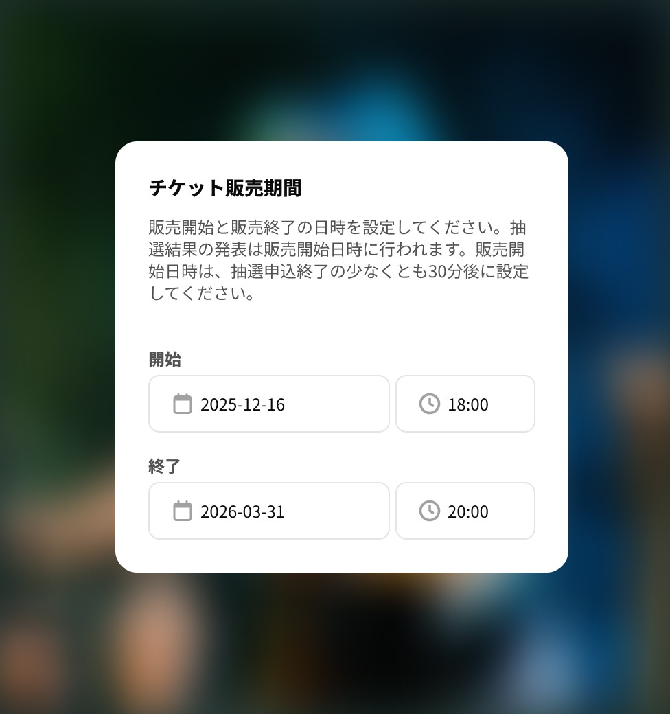 柔軟なApply-to-Buyオプションを使用して、アーリーバードまたはファンクラブ限定の先行販売を実施します。チケットがいつ、どのように入手可能になるかを管理しながら、最も熱心なサポーターに報います。
