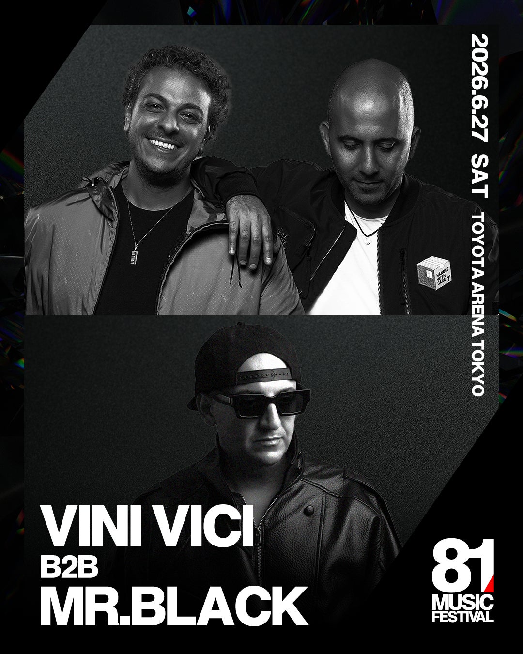 一方のMR.BLACKは、psy、techno、raveを横断する“future psytrance”を象徴するアーティストでTomorrowland、Ultraなど世界各地のビッグステージで存在感を放ち、独自のサウンドで新たなムーブメントを切り開いてきました。