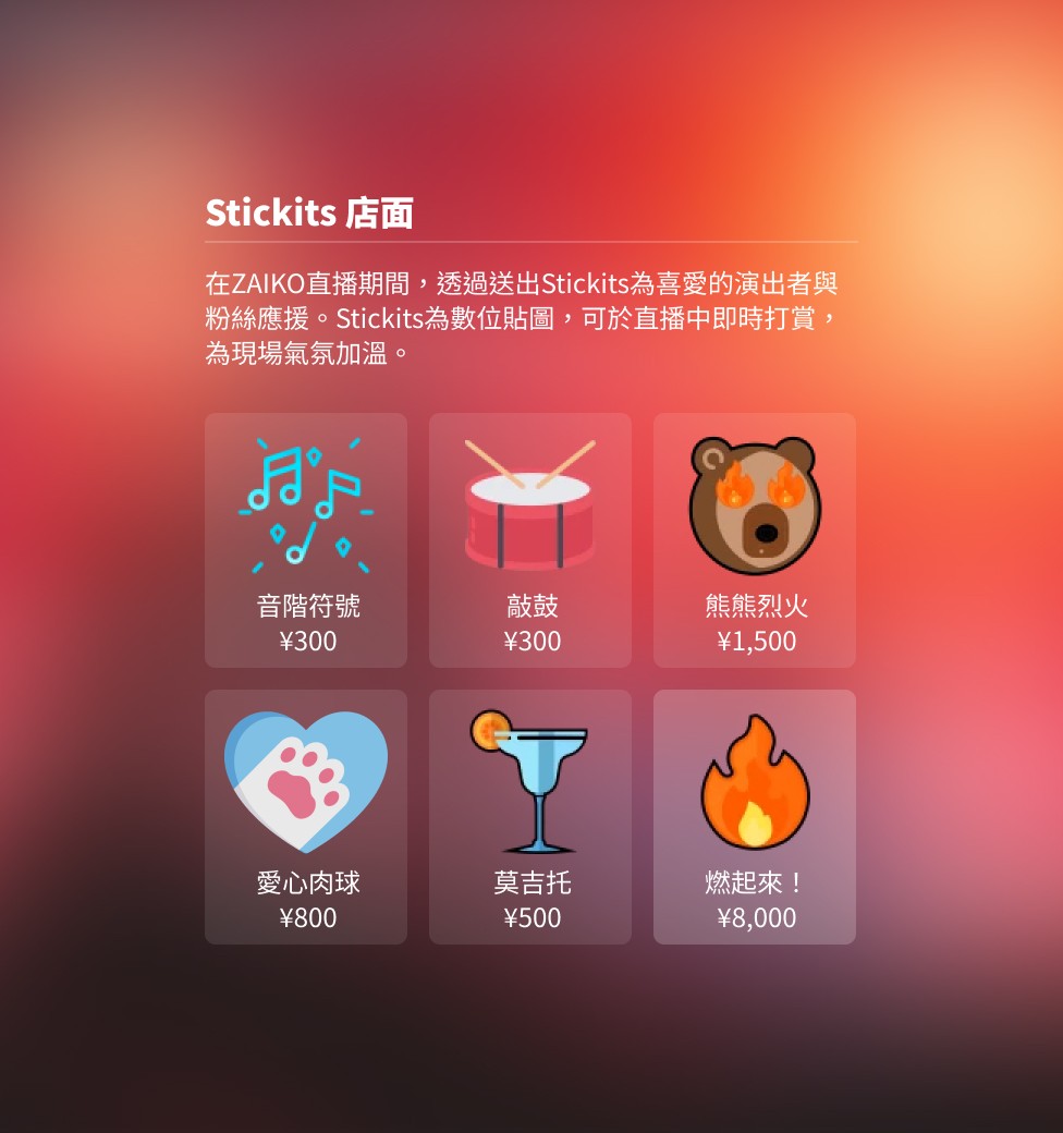 Stickits(スティキッツ)是粉絲在直播中支持創作者、參與當下熱烈氣氛所發送的付費貼圖。